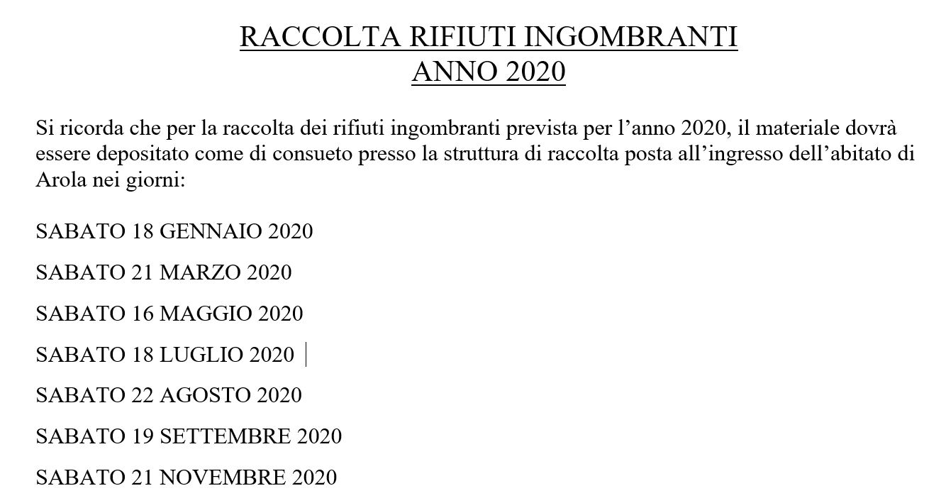 - Calendario raccolta ingombranti - anno 2020[.pdf 21,75 Kb - 09/01/2020]